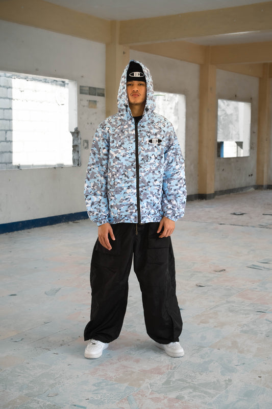 Zipped-Up Windbreaker Jacket ( Blue Digital Camou )